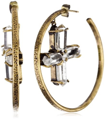 A unique, Goth-inspired piece that's both decadent and refined, the Low Luv by Erin Wasson Crystal Cross Earring features an eye-catching crystal cross resting inside a burnished 14K gold-plated hoop. The materials sparkle and shine in the light, while the 2.1-inch drop creates an alluring, elegant profile. This is the kind of piece to wear when you want to attract attention and add intrigue and subtle glamour to your ensemble. A simple post closure makes for easy on/off and secure wear, whether you're hitting the town for drinks with friends or dancing the night away.